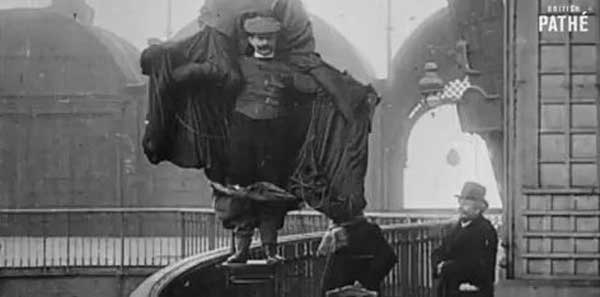 His inventor rival/peer, Gaston Hervieu, tried to convince him not to do it, and brought up technical issues that Franz had no real answers for. A guard, who had seen previous unsuccessful dummy attempts, also tried to stop him, but Franz threw a little tantrum, and the matter was "resolved." He went up to the top, strapped up, said, "À bientôt!" and fell 57 feet to his immediate death.