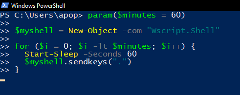 Now your computer will push the period key while you go off to do who knows what. You can close the PowerShell window to stop it, or press ctrl + C and keep on using the terminal if you want.
