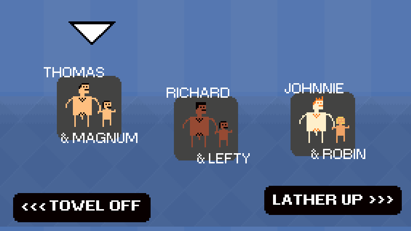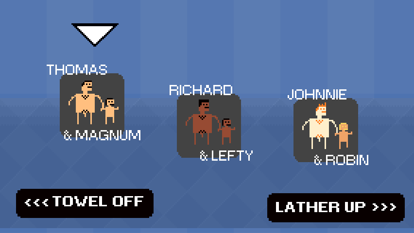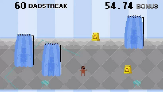 You pick a mode, like Endurodad or Dadathalon, which offer a variety of gameplay challenges, then you lather up, and hit the way-too-public showers. The basic premise of the game is to identify and run over to "your dad" before the timer runs out, while overcoming slippery floors and other obstructions that stand in your way or make movement harder. If you run to the wrong dad you lose, and try again.