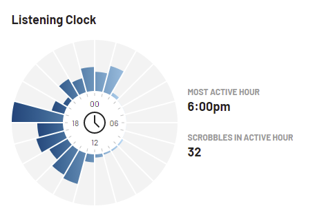 It's interesting watching my own music listening habits change based on what's going on in my life. They decline when I am recording music of my own, increase when I get a new piece of audio hardware or discover a great new artist. Even the times I listen to music follow an interesting pattern.